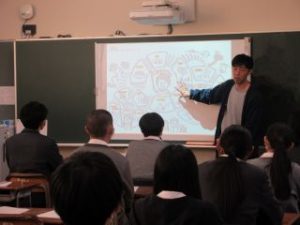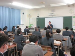 2025年11月28日 / 最終更新日時 : 2025年12月2日 cmsadmin27 新着情報 ようこそ先輩(1年生) 11月26日(水)、福井商業高校の卒業生を講師として招き、職業講話「ようこそ先輩」が1年生を対象として開催されました。 様々な職業に就いている先輩方から仕事の内容や高校時代に頑張っておくべきことなどを教えていただきました。実際に同じ学校で高校生活を送った先輩方からの実体験を交えたお話は、生徒が自分の将来について考える良い機会になりました。