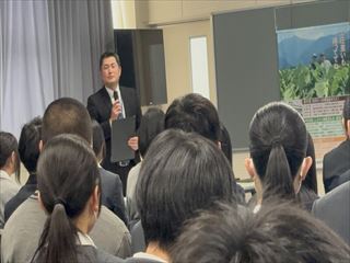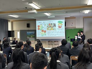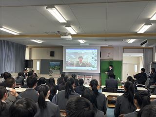県内の商業を学ぶ6校から代表チームが福井商業高校に集い発表を行いました。また、本校生徒900名、他校生徒200名余りがオンラインで視聴を行いました。生徒たちにとって他校の探究活動に触れる機会はほとんどなく、これまでに学んできたビジネスの知識をどのように活かしていくか、探究活動をどのようにビジネスとして成立させていくかなど、各発表を真剣な眼差しで視聴し、自分たちの探究活動へのヒントを探していました。