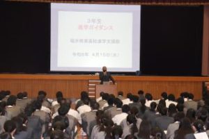 4月15日(水)、3年生の進路ガイダンスが実施されました。3年生は、進学支援部長と就職支援部長の説明に真剣に耳を傾けていました。